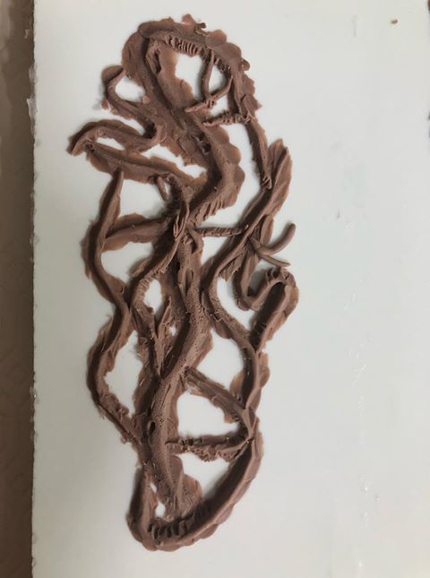 התהליך החל בפיסול לחיים מצולקות ורצועות של סימני כוויה עמוקים מחימר פיסולי.