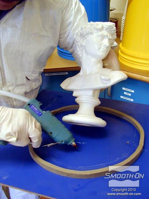 אזהרה: פוליאוריתן למריחה Plasti-Paste® נדבק להכל, במיוחד לגומי אוריתן. לכן, יש למרוח על המודל והחימר חומר הפרדה Sonite Wax.