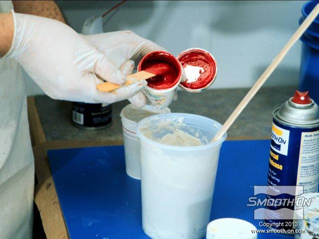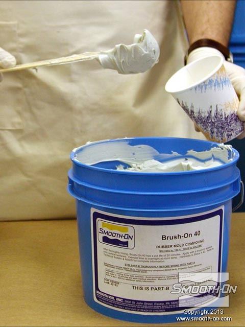 מערבבים את מרכיבי הגומי. צובעים כל שכבה שניה כדי להבטיח כיסוי טוב של כל משטחי המודל.