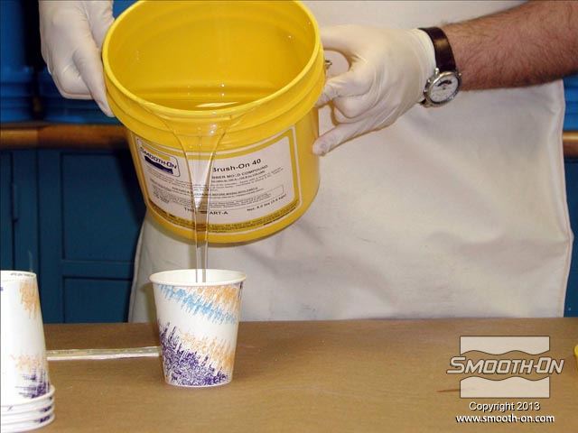 מכינים עוד מנה של פוליאוריתן גמיש למריחה Brush-On עם מסמיך 'URE FILL 11', ללא צבע.