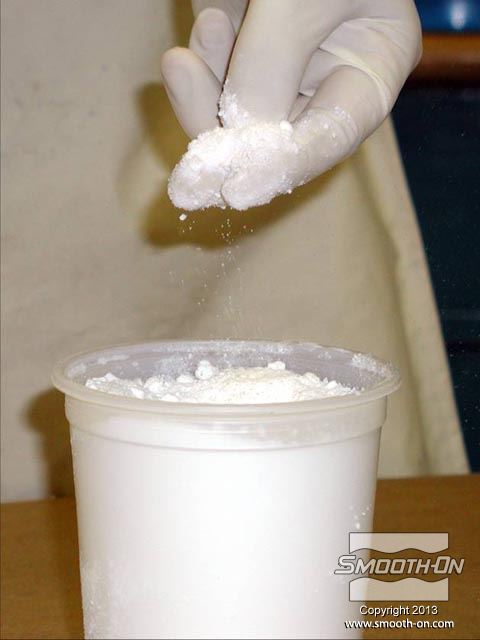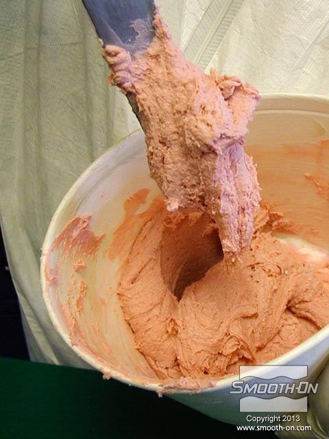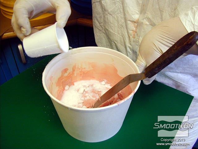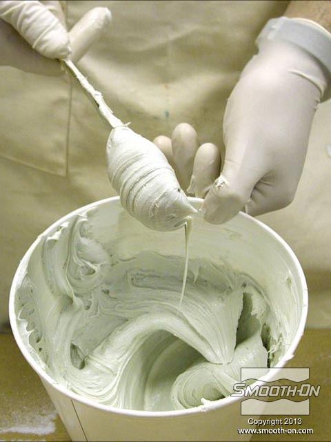 מוסיפים את המסמיך בהדרגתיות לחומר תוך כדי ערבוב, עד שמגיעים לסמיכות ולמרקם הרצוי. מרבית יוצרי התבניות מעדיפים לעבוד בסמיכות דומה לזו של פירה.