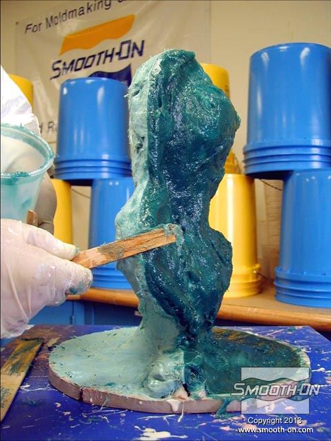 מכסים את המודל לגמרי בפוליאוריתן Plasti-Paste®. דואגים שקצוות המעיל אינם דקים מדי.