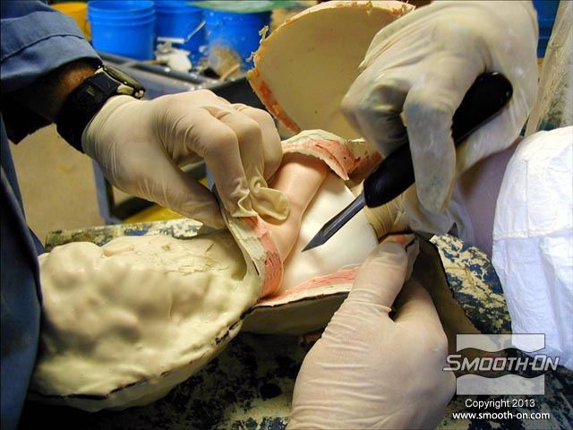 גומי סמיך יותר הוא טוב במיוחד למילוי אנדרקטים ולהכנת סתימות וקווי תפר עבים שיעזרו בהפרדה בין איזורי תבנית הגומי השונים.