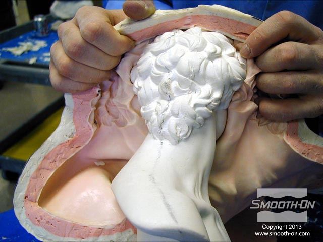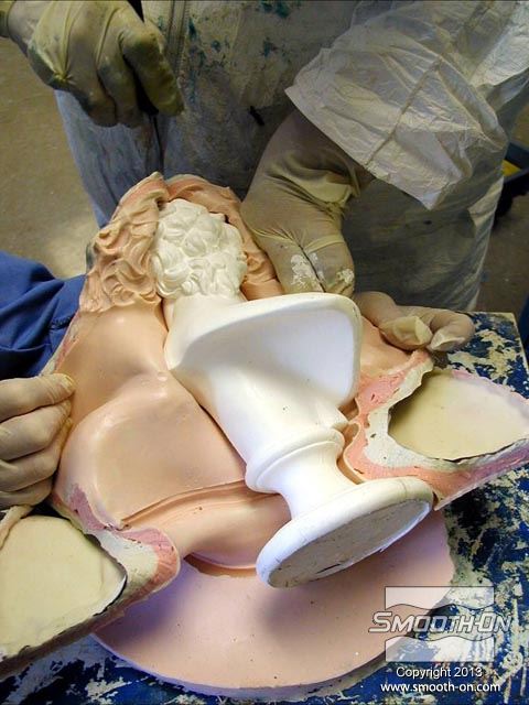 לאחר שמעיל התמיכה מתמצק לגמרי, מורידים אותו ואת תבנית הגומי מהמודל המקורי.