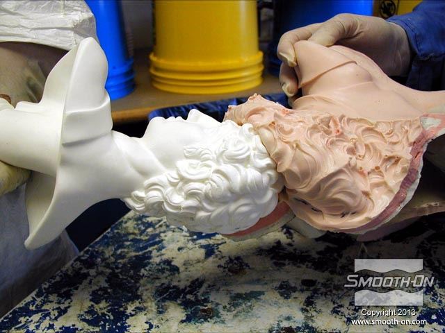 חולצים את המודל המקורי מתבנית הפוליאוריתן Brush-On. מומלץ להעזר באדם נוסף לשלב זה.