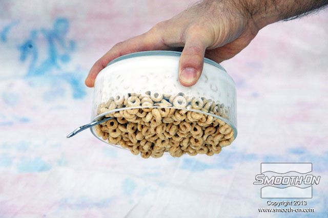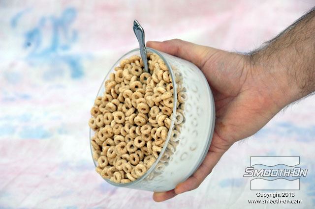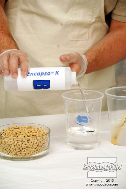 לאחר יום, סיליקון שקוף כמו מים- Encapso® K התמצק ומדבקים את כל דגני הבוקר בפרופ ביחד, עד לרמה שניתן להפוך את הפרופ מבלי לאבד חומר בכלל!
