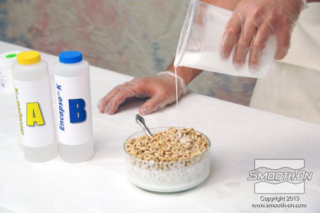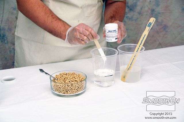 מוסיפים לסיליקון Encapso® K פיגמנט Silc-Pig לבן כדי לדמות מראה של חלב.