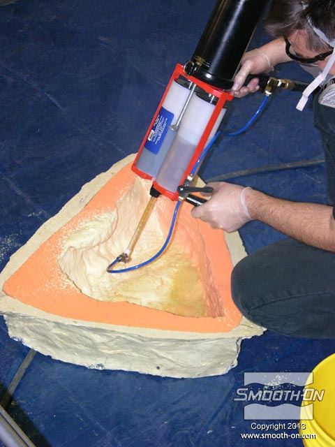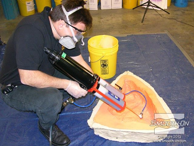 משתמשים בתבנית של סיליקון למריחה Rebound® 25 עם מעיל תמיכה וממקמים אותה עבור ההתזה.