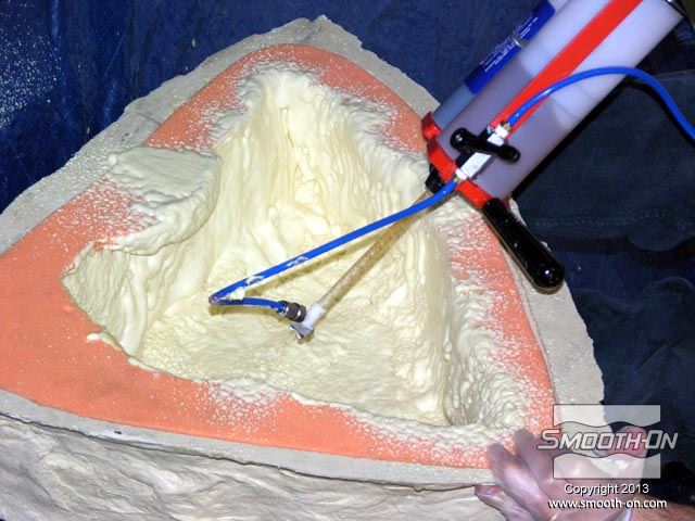 הקצף מתחיל להתפשט במהירות ויוצר מעטפת חלולה.