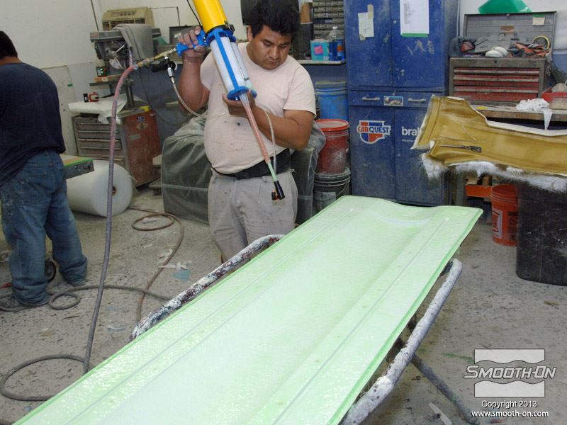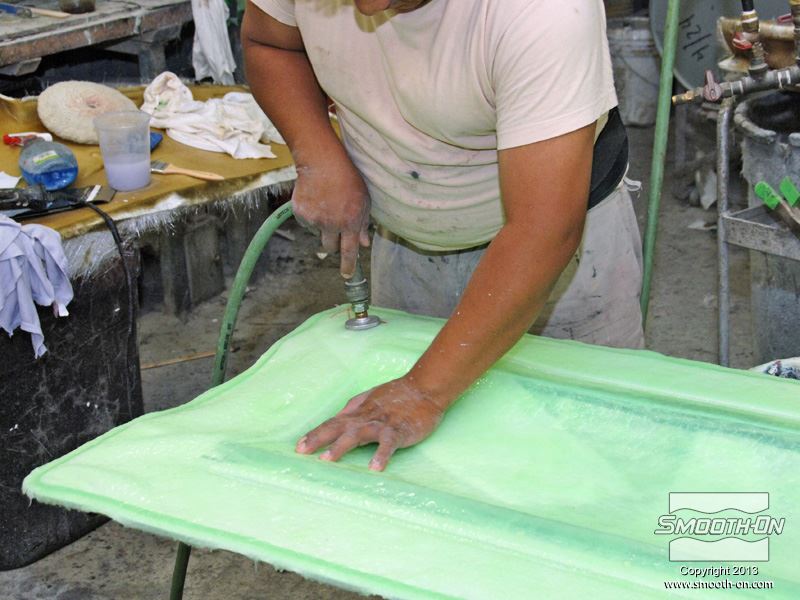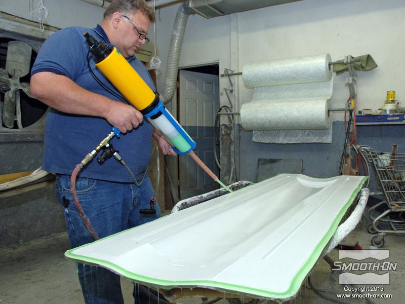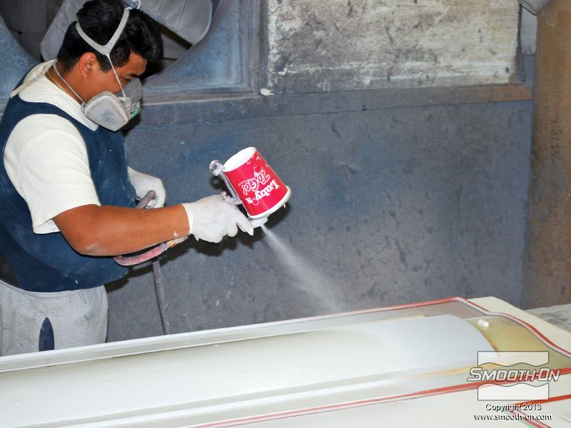 מרססים שכבת ג'לקוט על בסיס אפוקסי (Gel Coat) על המודל.