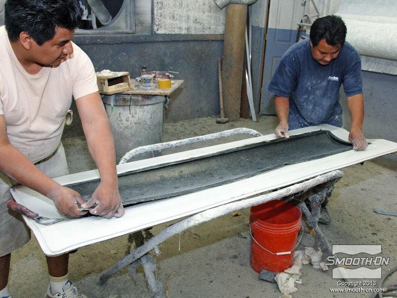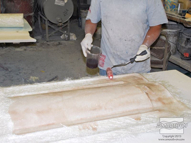 מכינים לג'לקוט תמיכה מסיבי זכוכית ספוגים בשרף אפוקסי. במקרה זה משתמשים בבד זכוכית לא ארוג.