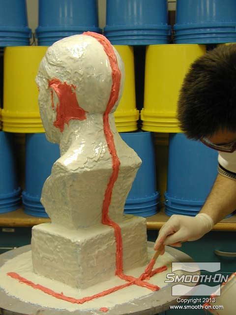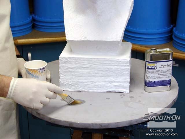מכיוון שעבור התבנית משתמשים בפוליאוריתן Brush-On® 40 יש ראשית למרוח חומר אטימה SuperSeal ולאחר מכן חומר הפרדה Universal Mold Release על מודל הגבס (פוליאורתנים נדבקים כמעט לכל דבר).