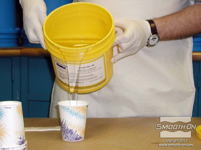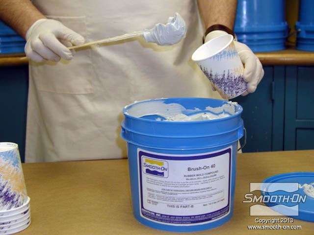 למקשה של ה גומי פוליאוריתן Brush-On® 40 מוסיפים פיגמנט לפוליאוריתן So-Strong ומערבבים עם הבסיס והמסמיך. הגומי בשכבה זו הוא משמעותית סמיך יותר, מתקרב לצמיגות של בצק לאפיית לחם.