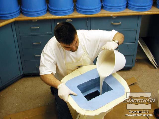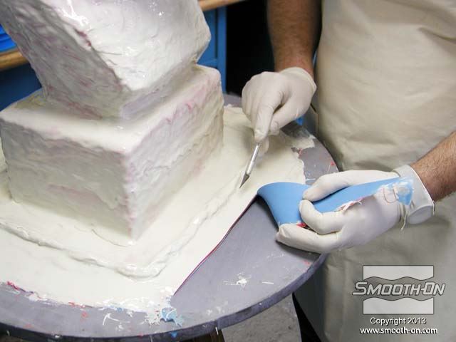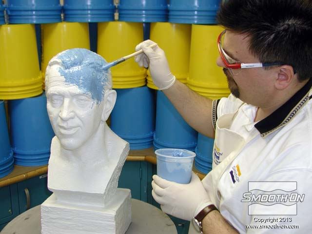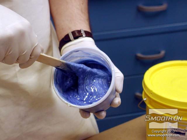 צובעים ב פיגמנט לפוליאוריטן So-Strong כחול את המנה הראשונה של הפוליאורתן Brush-On® 40 כדי להבטיח כיסוי טוב של המודל (גם החומר וגם המודל לבנים).