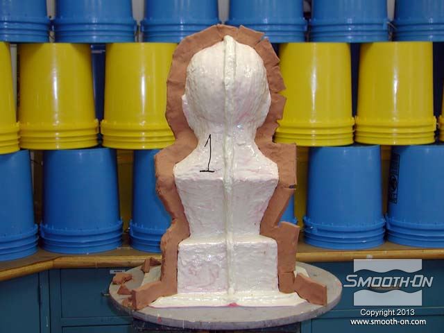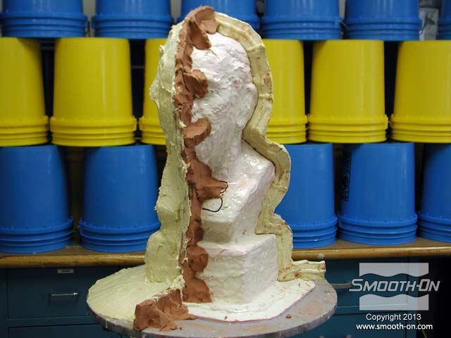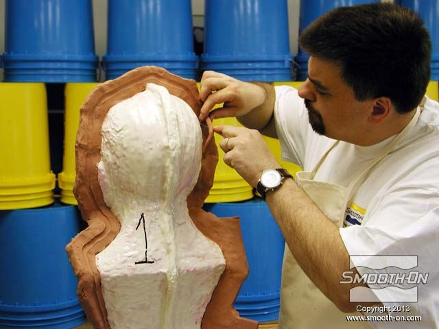 משתמשים בפיסות חימר כדי לתמוך בקו ההפרדה בזמן הכנת חצי המעיל הראשון (את התמיכה יש להכין בצד הנגדי).