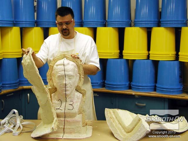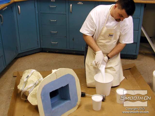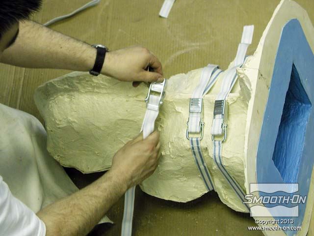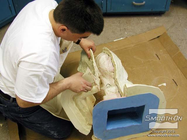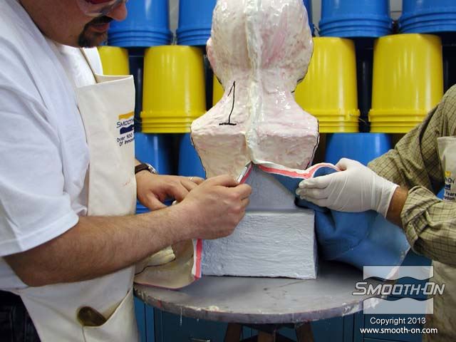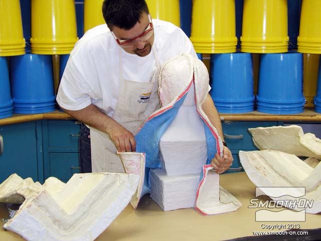 מודדים ומערבבים את הפוליאוריטן Plasti-Paste כמו קודם ומתחילים בהכנת חלק מעיל התמיכה השלישי. לאחר שמסיימים לכסות את המודל מניחים לחומר להתמצק במשך 90 דקות לפני שמתחילים בפתיחת מעיל התמיכה וחליצת המודל המקורי.