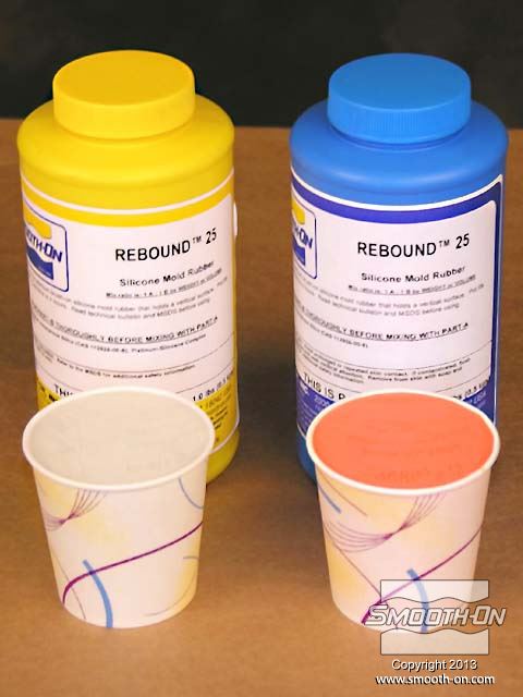 מודדים כמויות שוות לפי נפח של סיליקון למריחה Rebound® 25. שופכים את החומרים למיכל ערבוב ומערבבים במשך 3 דקות.
