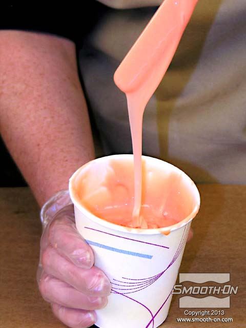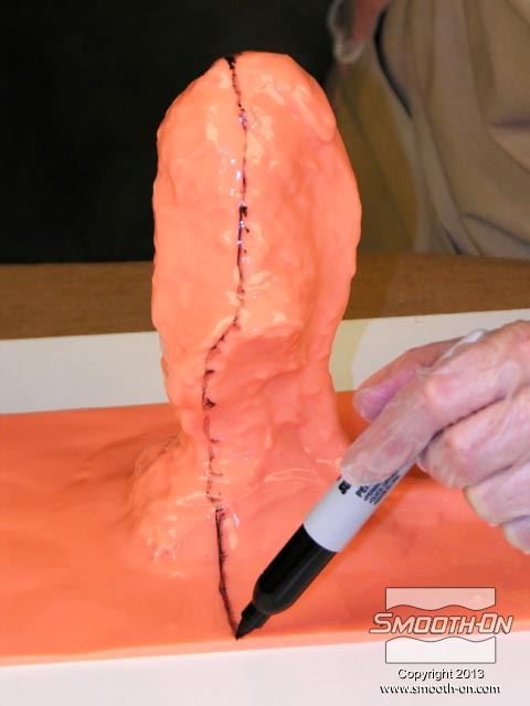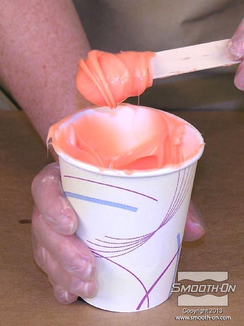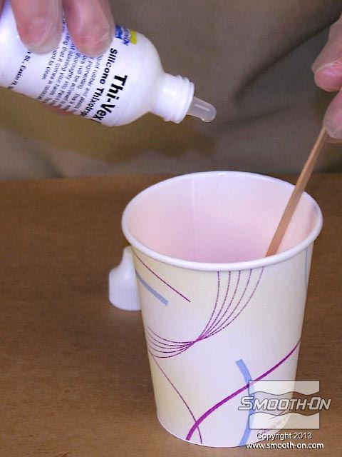 כדי לייצר קו תפר מעובה בתבנית, מכינים מנה קטנה של סיליקון למריחה Rebound® 25 ומוסיפים לה 4 טיפות של מסמיך Thi-Vex על כל אונקיה (Oz. = 28.35 gr)