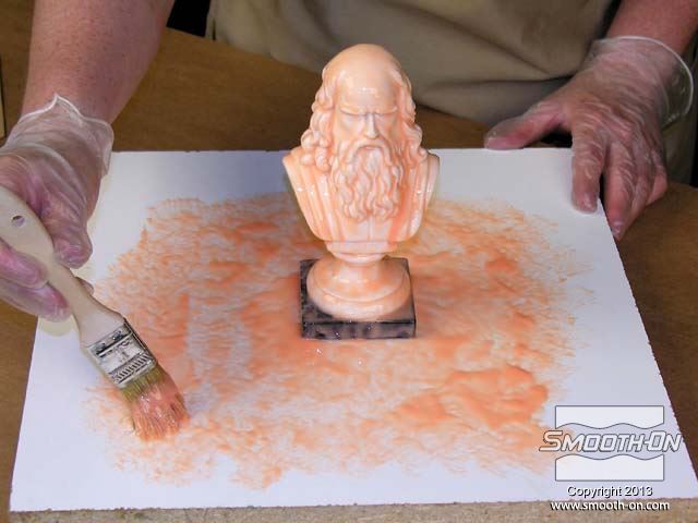 שכבה רביעית - מערבבים ומורחים שכבה רביעית של גומי סיליקון Rebound® 25 (ללא מסמיך) ומורחים על המודל ועל לוח הבסיס.