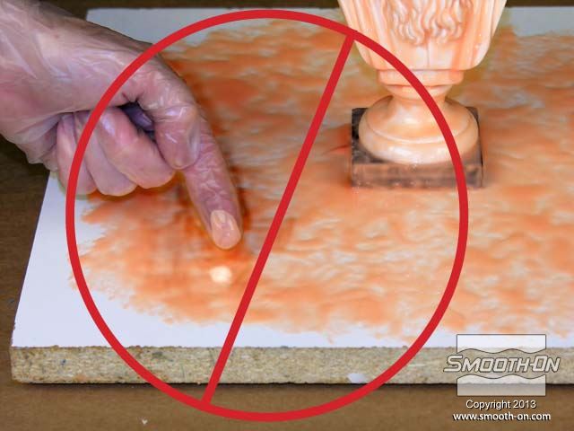 מניחים לפוליאוריתן Smooth Cast® 300 להתמצק במשך לפחות 20 דקות. אזהרה: פוליאורתן Smooth Cast® 300 מתחממם מאוד! מניחים לו להתקרר מספיק לפני שחולצים אותו.