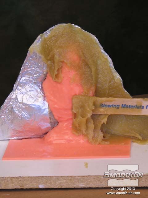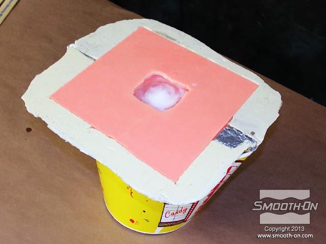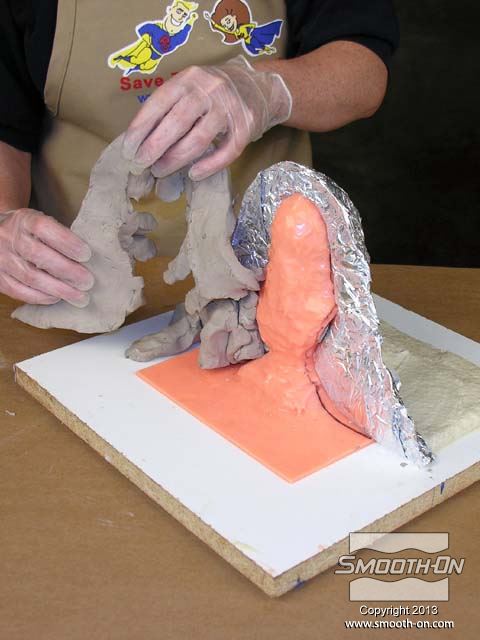 מניחים לפוליאורתן Plasti-Paste להתמצק במשך 90 דקות בטמפ' החדר. לאחר שהחומר מתמצק, מקפלים את נייר האלומיניום על גבי הPlasti-Paste ומסירים את קיר החימר.