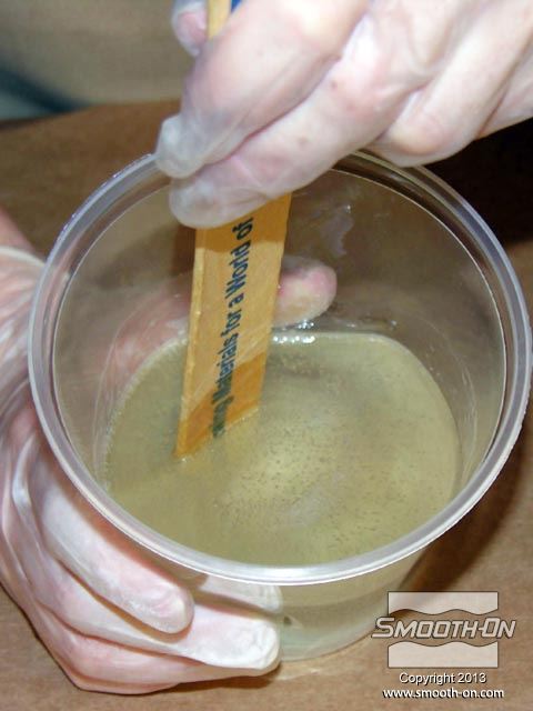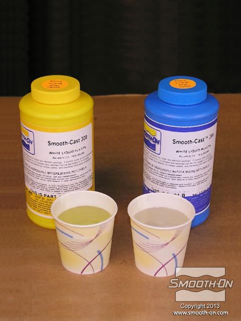 מודדים כמות שווה של בסיס ומקשה (לפי נפח) של פלסטיק פוליאוריטן קשיח ליציקה Smooth Cast® 300.
