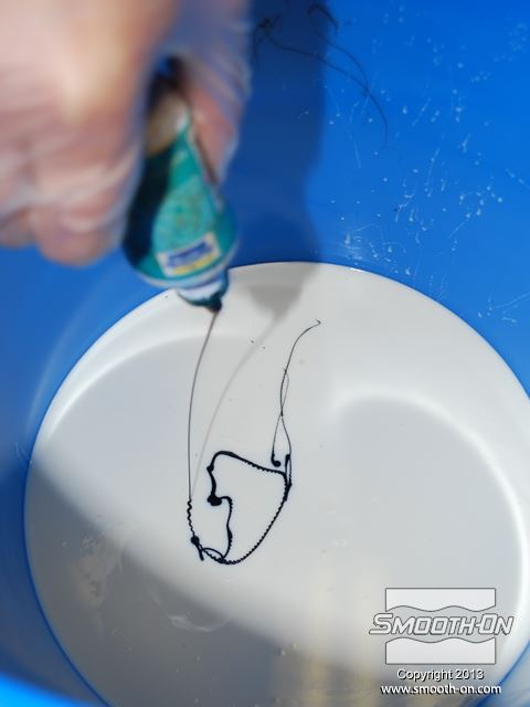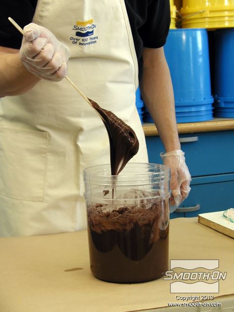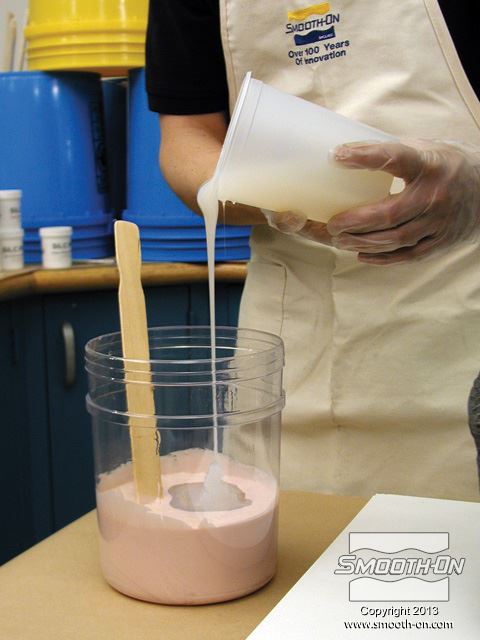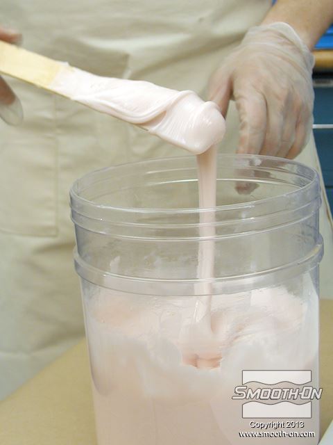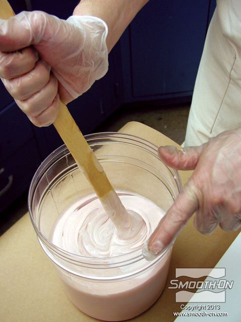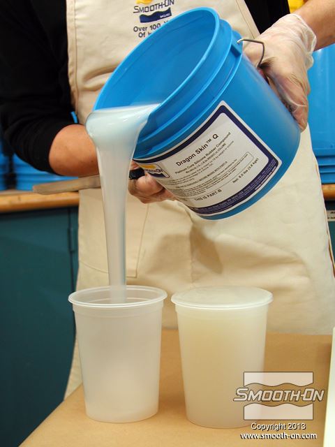 המנה הזאת של סיליקון Dragon Skin® 10 FAST תשמש למילוי אנדרקאטים ואזורים עמוקים במודל. מסיבה זו, למנה הזו מוסיפים כמות מסמיך Thi-Vex גדולה יותר מבשכבות הקודמות. מוסיפים מסמיך עד שהסיליקון כבר לא ממש נוזלי.