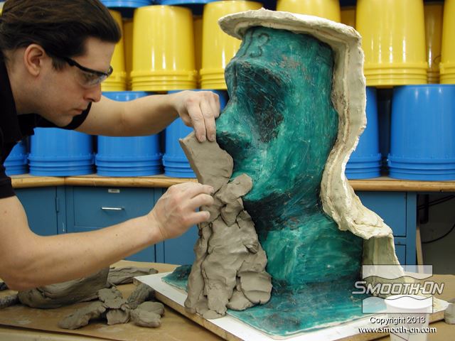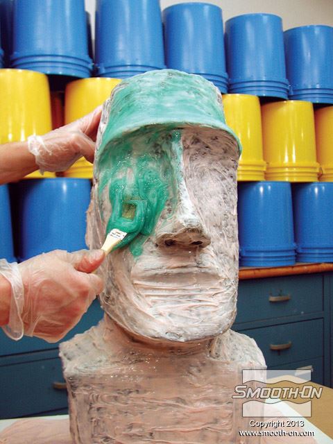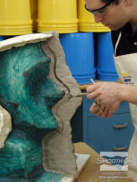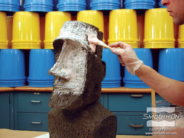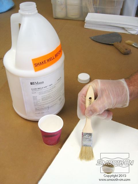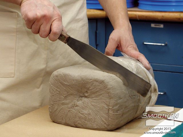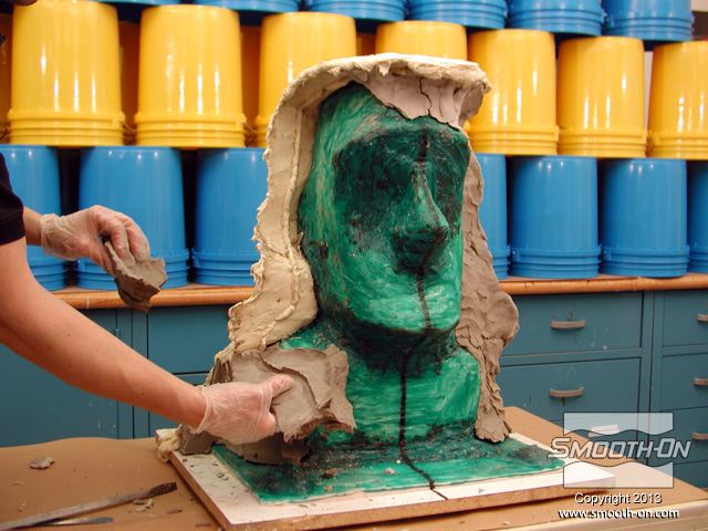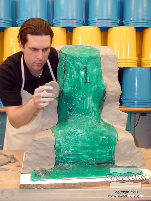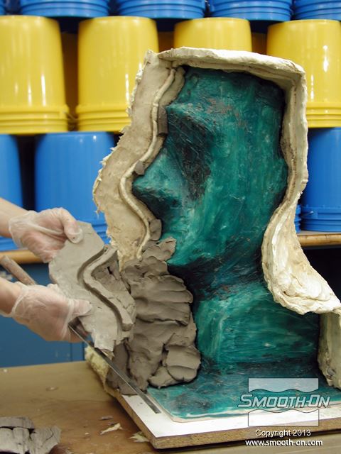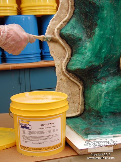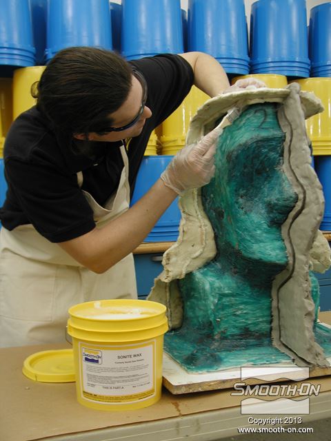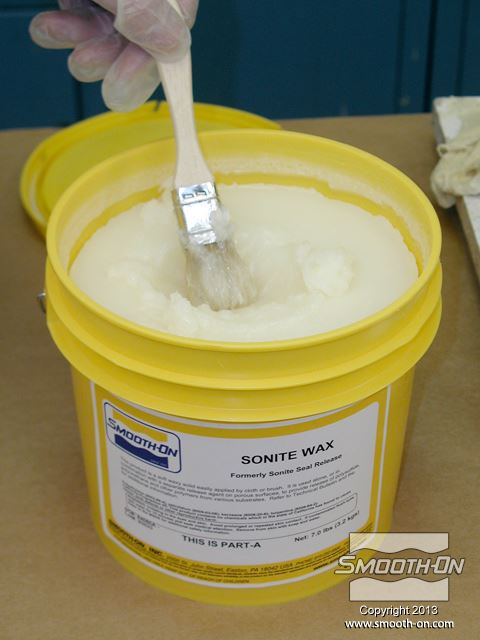 מורחים על כל המשטחים במודל ובקיר החימר חומר הפרדה Sonite Wax כדי למנוע מהפוליאוריתן Plasti-paste להדבק לעצמו.