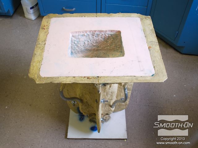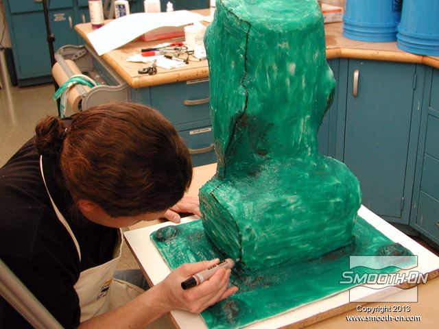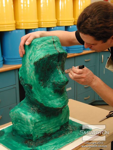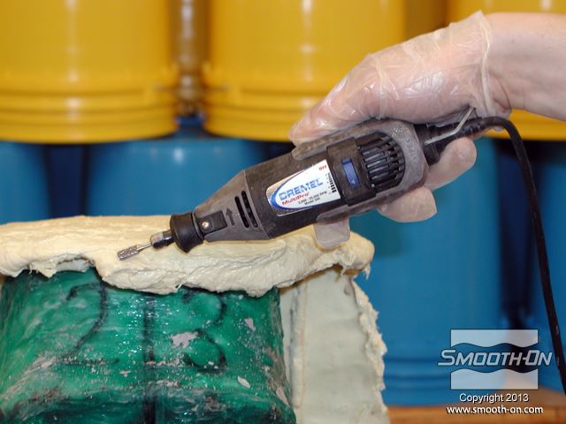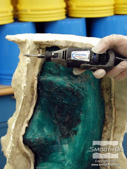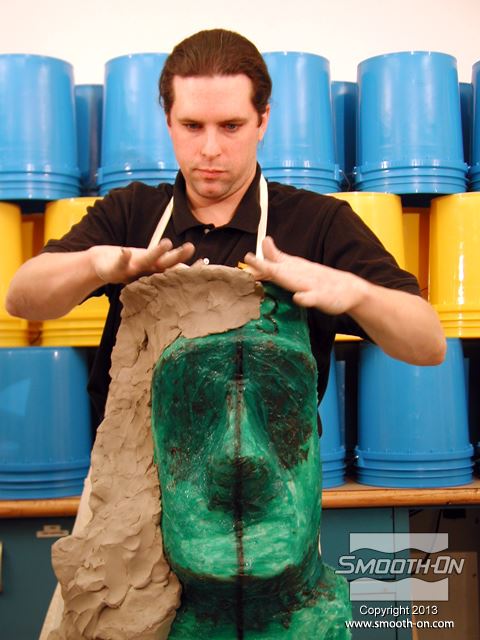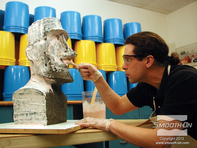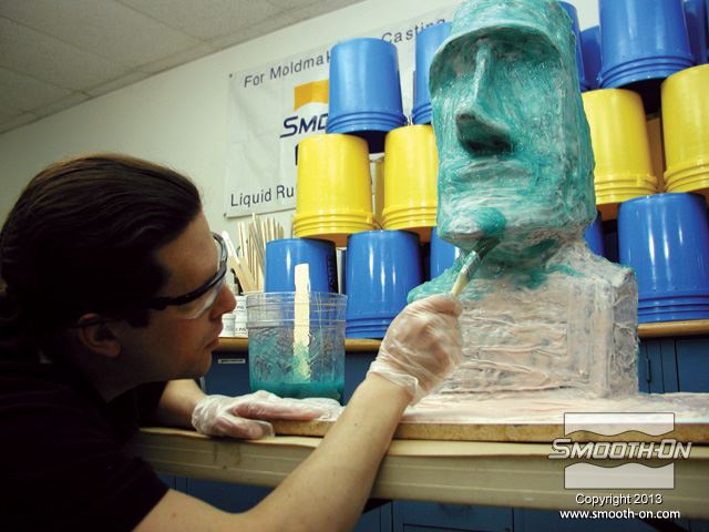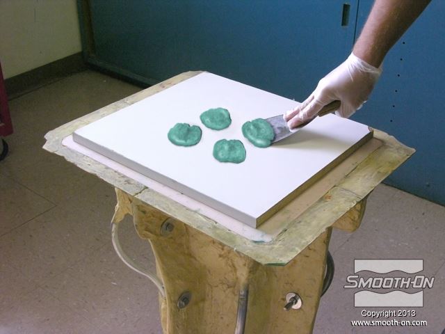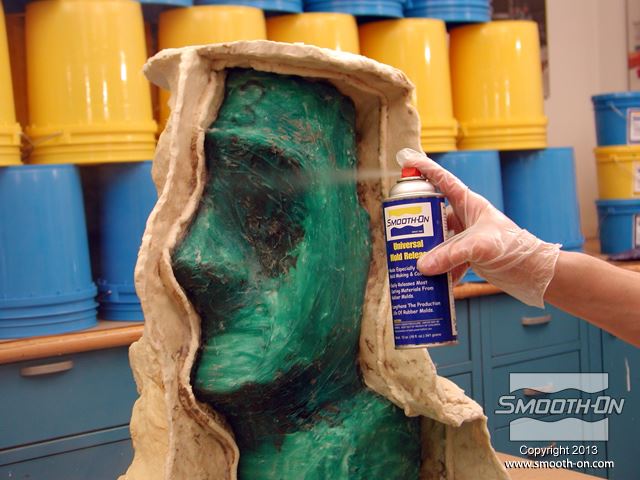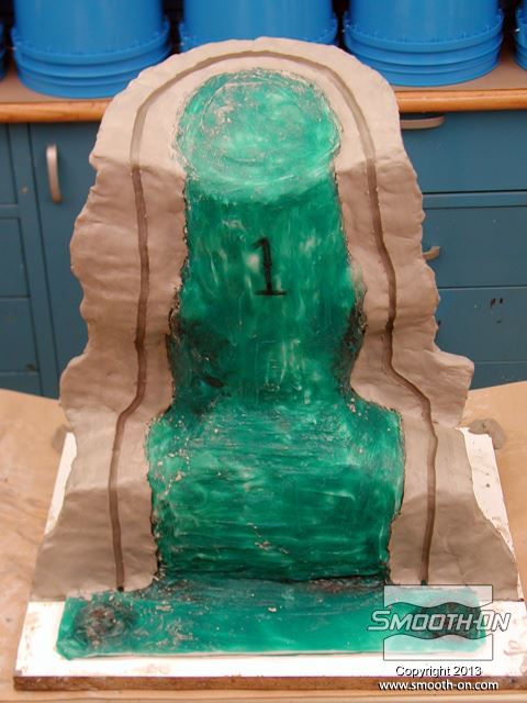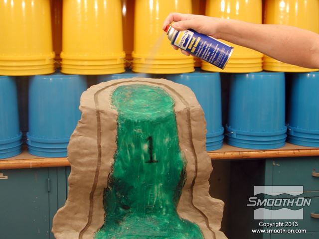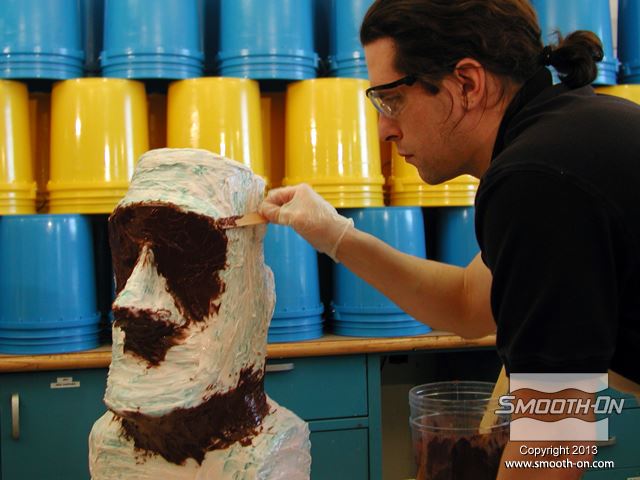 מורחים על כל המשטחים במודל ובקיר החימר חומר הפרדה Sonite Wax כדי למנוע מהפוליאוריתן Plasti-paste להדבק לעצמו.