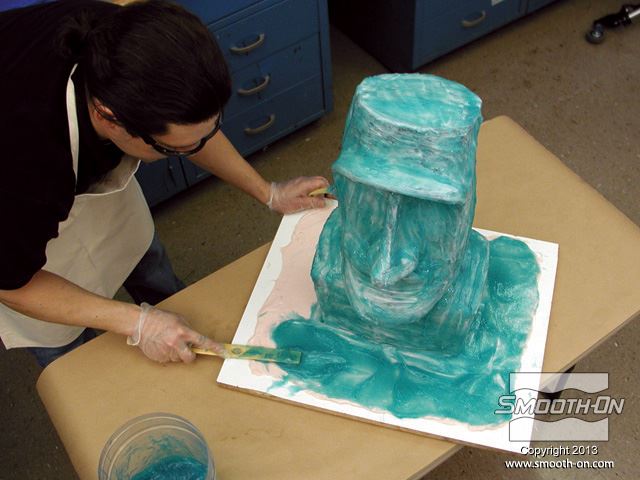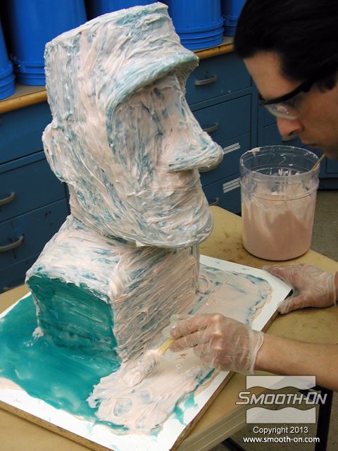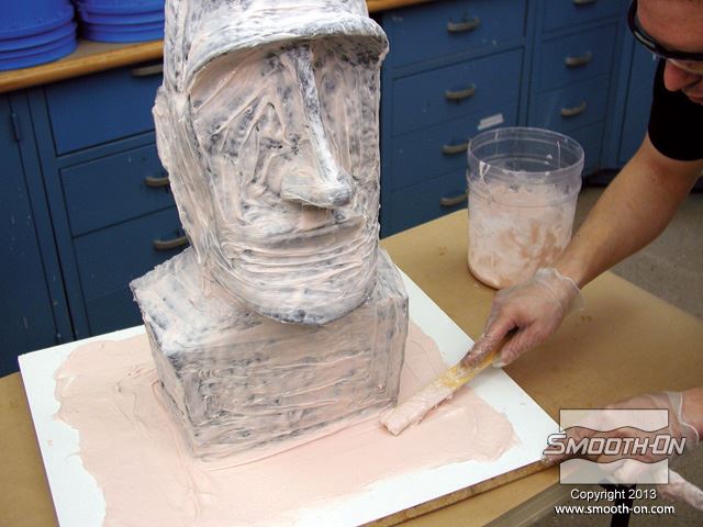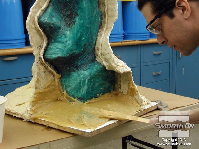 מורחים פוליאוריתן קשיח מחוזק בסיבים Plasti-Paste על המודל עד שמתקבל מעיל תמיכה בעובי של 1 ס"מ. מניחים לPlasti-Paste להתמצק לגמרי (בערך 90 דקות) לפני שממשיכים לשלב הבא.