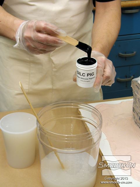 פיגמנט לסיליקון -Silc-Pig הירוק שונה מאוד מצבע השכבה הראשונה ומקל על כיסוי המודל, אך בכל זאת חשוב לבחון את המודל מכל הכיוונים כדי להבטיח כיסוי טוב.
