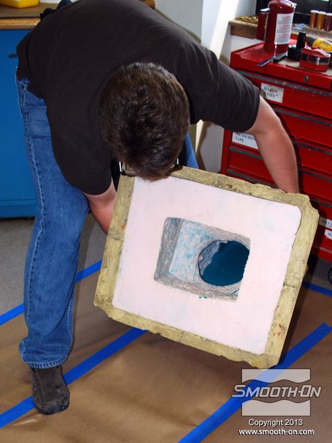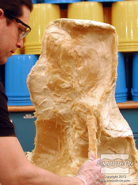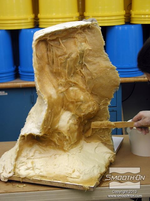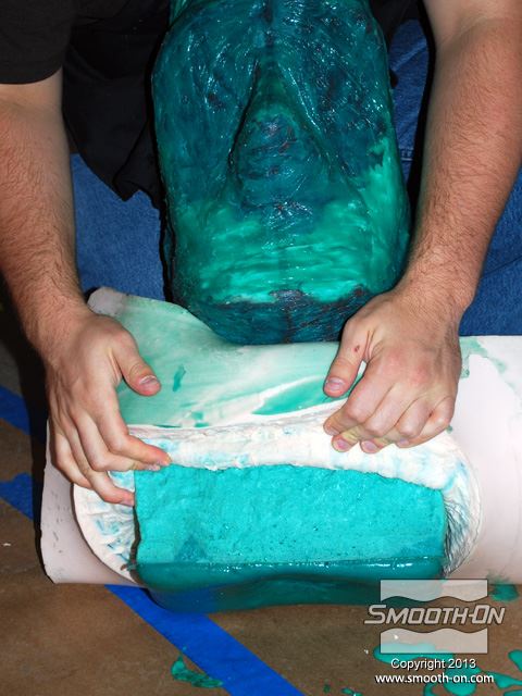 בסופו של דבר הופכים לגמרי את תבנית הסיליקון הרך Dragon Skin 10 Fast כדי לחלוץ את יציקת קצף הפוליאוריתן הגמיש FlexFoam-iT® X. סיליקון Dragon Skin הוא אחד מסוגי הסיליקון היחידים שהם גם חזקים מספיק וגם גמישים מספיק כדי לשמש בסוג חליצה כזה (בו הופכים את התבני