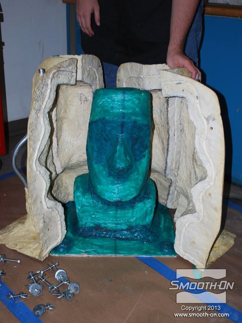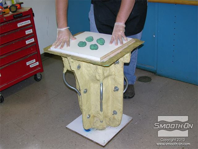 מעיל התמיכה יהיה עשוי מפוליאוריתן קשיח Plasti-Paste, שהוא חומר מאוד דביק. לכן, לפני הכנת מעיל התמיכה חשוב למרוח חומר הפרדה על בסיס וקס Sonite Wax על כל משטחי המודל ומחיצת החימר שבהם יגע הפוליאוריתן.