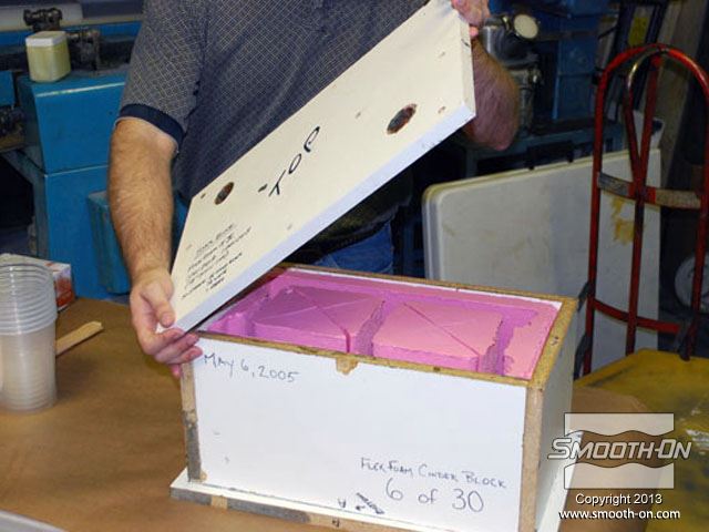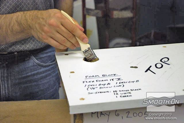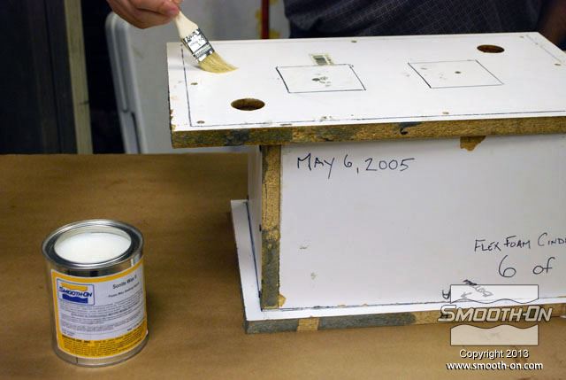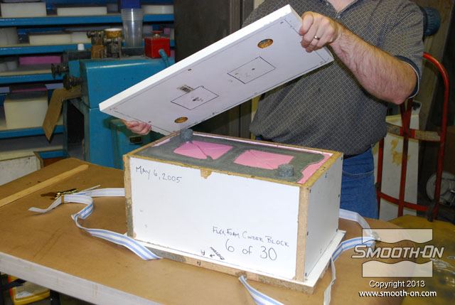 לחיצה להגדלת תמונה מורחים גם כל החורים במכסה חומר הפרדה Sonite Wax, כדי למנוע מהקצף להדבק. מורחים גם כל החורים במכסה חומר הפרדה Sonite Wax, כדי למנוע מהקצף להדבק.