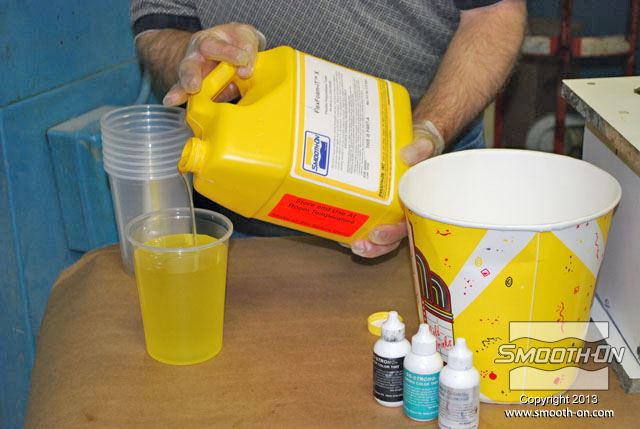 לחיצה להגדלת תמונה שופכים את המקשה של קצף הFlex Foam-iT! X אל מיכל הערבוב. שופכים את המקשה של קצף הFlex Foam-iT! X אל מיכל הערבוב.