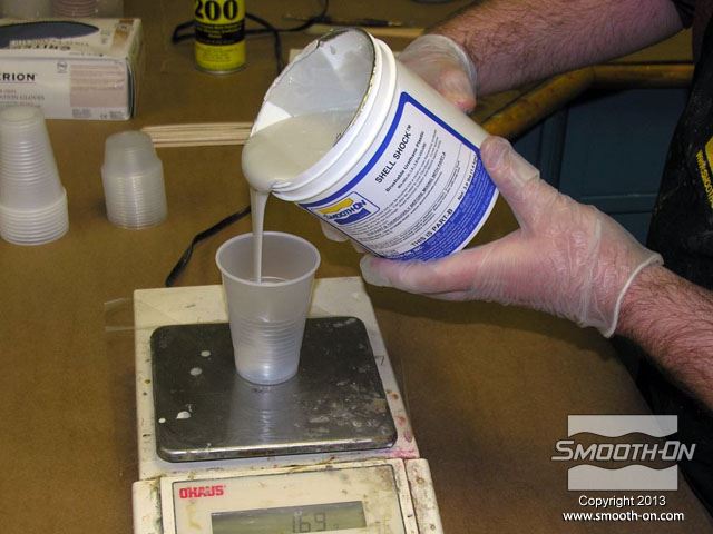 לחיצה להגדלת תמונה שוקלים את מקשה הפוליאורתן למריחה Shell Shock (יחס ערבוב 1A:5B לפי משקל). שוקלים את מקשה הפוליאורתן למריחה Shell Shock (יחס ערבוב 1A:5B לפי משקל).