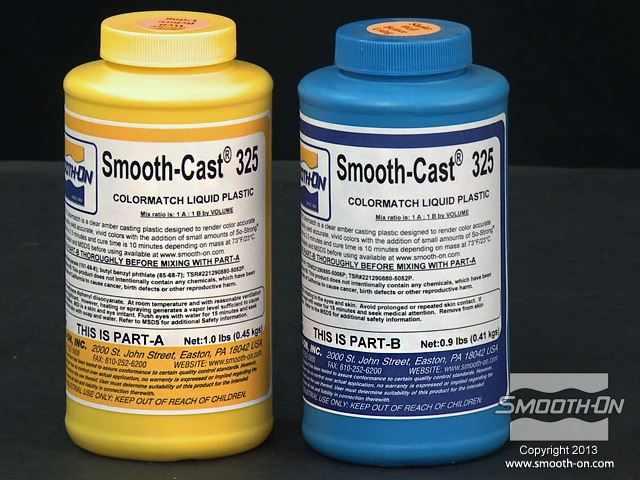 יציקה - החומר אותו יוצקים הוא פוליאוריתן קשיח Smooth-Cast® 325 מסדרת COLORMATCH. יחס הערבוב הוא 1A:1B לפי נפח.