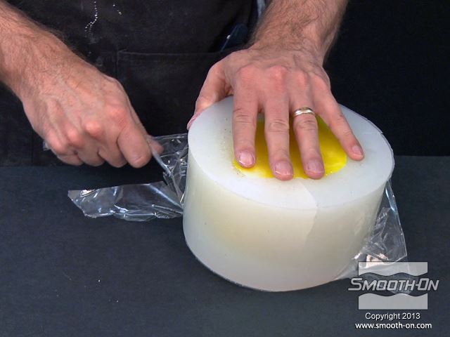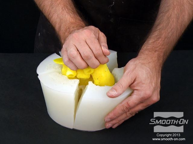 מודל הספוג מקורי הוא מפורט במיוחד ומכיל זוויות שליליות (אנדרקאטים) עמוקות. בחירת החומר הלא נכון להכנת התבנית יגרום להדבקות או פגיעה בתבנית. החומר הטוב ביותר עבור הכנת התבנית במקרה זה הוא סיליקון רך Dragon Skin®10 כיוון שהוא אלסטי ורך במיוחד אך בעל חוזק קריעה גבוה יחסית.