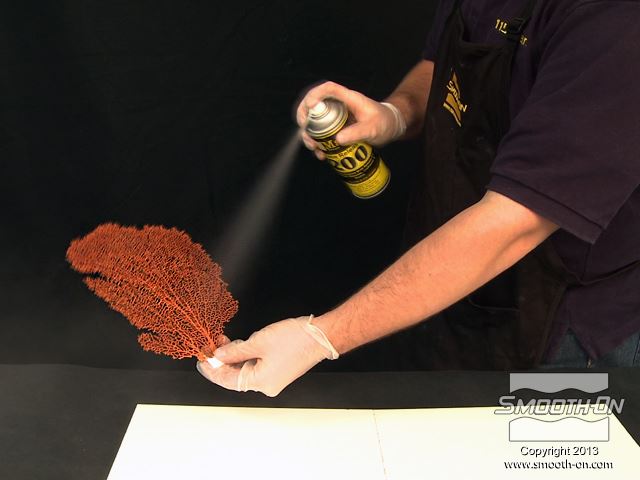 לחיצה להגדלת תמונה בגלל שלמניפת הים יש פרטים מאוד קטנים ועדינים, מרססים חומר הפרדה בין סיליקון לסיליקון Ease Release 200 על שני צידי המודל ומכסים אותו לגמרי בחומר.  כך מבטיחים שתבנית הסיליקון Equinox® 40 תרד בקלות מהמודל. בגלל שלמניפת הים יש פרטים מאוד קטנים ועדינים, מרססים חומר הפרדה בין סיליקון לסיליקון Ease Release 200 על שני צידי המודל ומכסים אותו לגמרי בחומר. כך מבטיחים שתבנית הסיליקון Equinox® 40 תרד בקלות מהמודל.