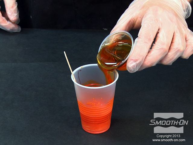 לחיצה להגדלת תמונה מוסיפים למקשה הכתום לבן את בסיס הפוליאוריטן ליציקה Smooth-Cast® 60D ומערבבים בקפידה. מוסיפים למקשה הכתום לבן את בסיס הפוליאוריטן ליציקה Smooth-Cast® 60D ומערבבים בקפידה.