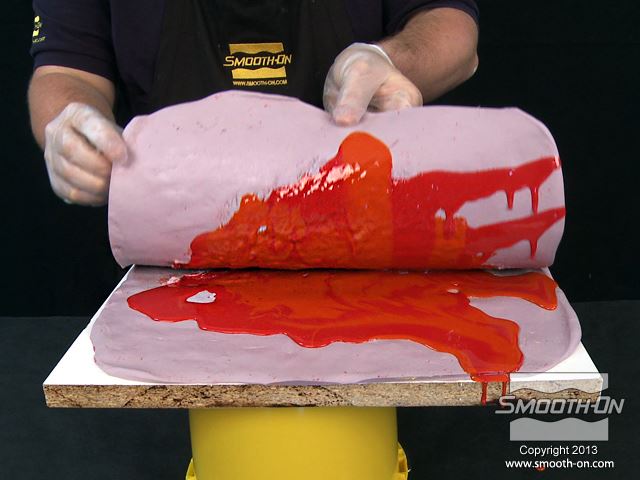 לחיצה להגדלת תמונה סוגרים את התבנית לאט ומניחים לפוליאוריתן Smooth-Cast® 60D לזרום ולמלא את כל רשת ה סוגרים את התבנית לאט ומניחים לפוליאוריתן Smooth-Cast® 60D לזרום ולמלא את כל רשת ה"ורידים" של המודל המקורי.