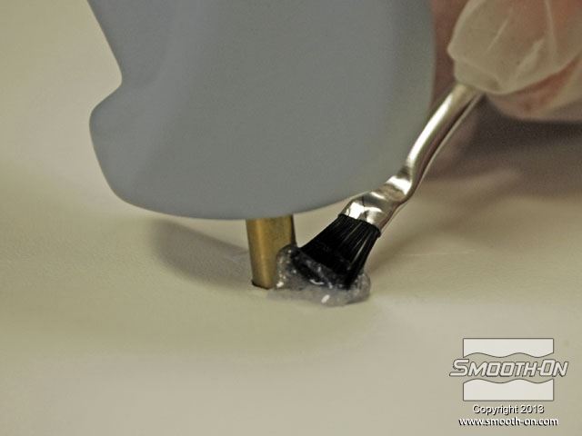 מורחים את האפוקסי על צינור הפליז ולוח הבסיס.