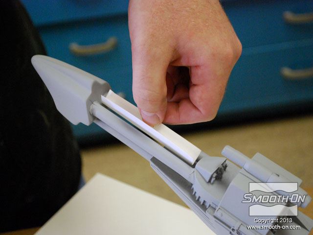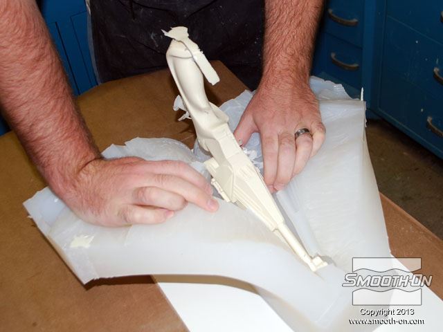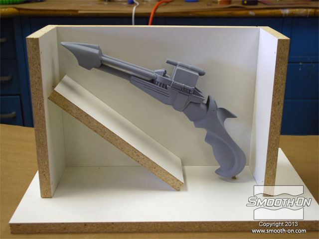 סיליקון ליציקה Mold Max 15T זורם על האקדח ומכסה אותו.