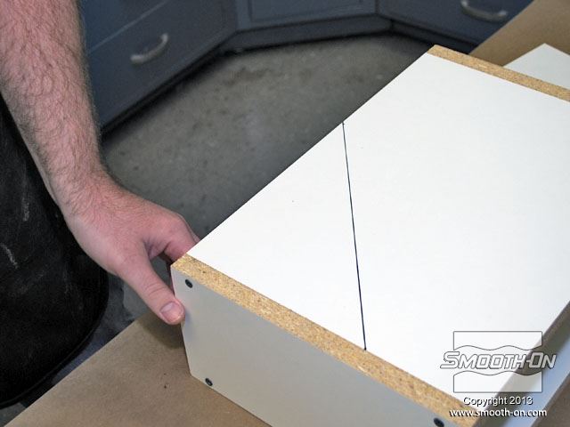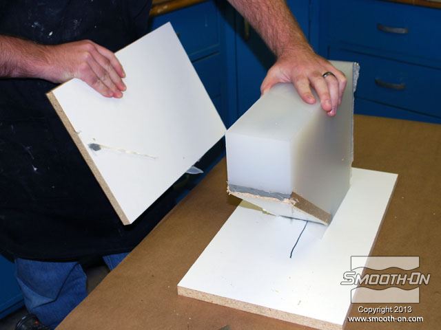 חותכים לוח אחד לגודל המתאים בכדי להשתמש בו כ "דמה". תפקידו של לוח זה הוא להקטין את חלל הקופסת התבנית וכך לצמצם את כמות הסיליקון ליציקה שתשמש להכנת התבנית (תמונות בהמשך).