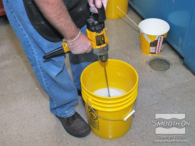 מערבבים את סיליקון ליציקה Mold Max 15T בעזרת מקדחה עם ראש מיקסר.