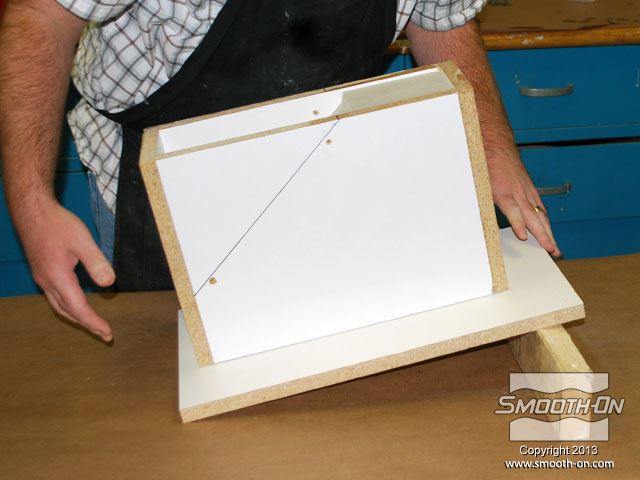 מציירים קו אלכסוני שמסמן את מיקום לוח הדמה בקופסת התבנית.