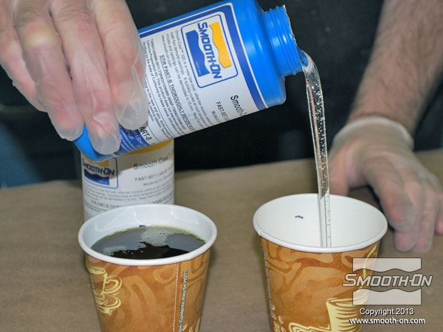 מודדים את חלקי הבסיס והמקשה ביחס ערבוב 1A:1B (לפי נפח), של פוליאוריתן קשיח מהיר ליציקה Smooth-Cast 320.