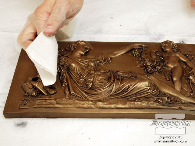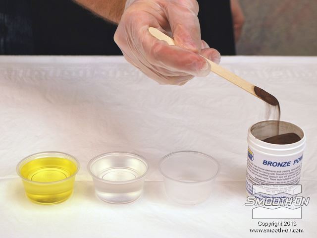 מערבבים את הפוליאוריטן קשיח ליציקה הSmooth-Cast® 325, פיגמנט שחור SO-Strong ואבקת ברונזה כדי להכין "יציקה קרה" של ברונזה. ניתן להשתמש גם בכל אבקת מתכת אחרת (המותאמת עבור 325) עבור תהליך זה.