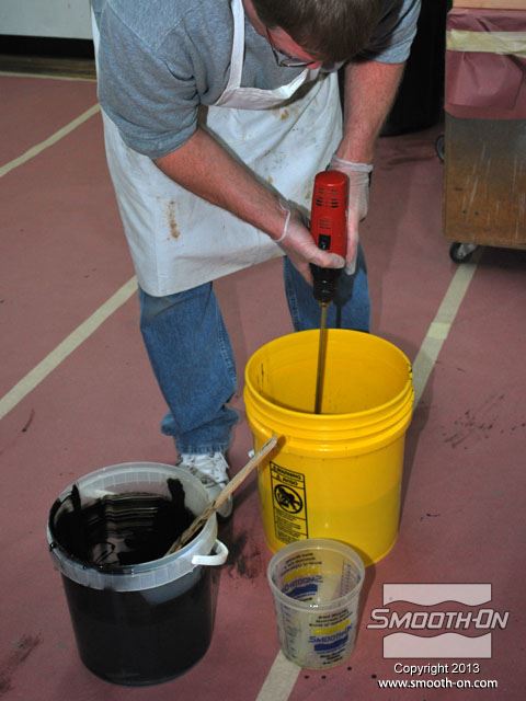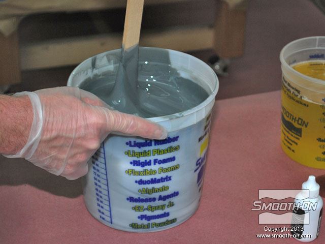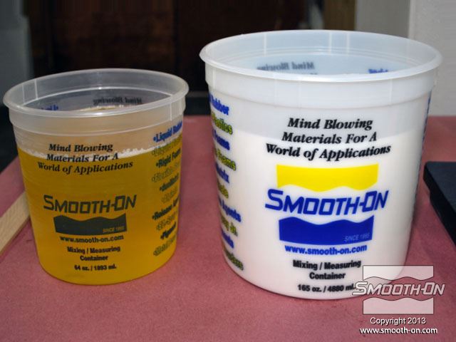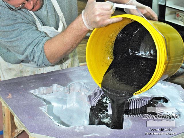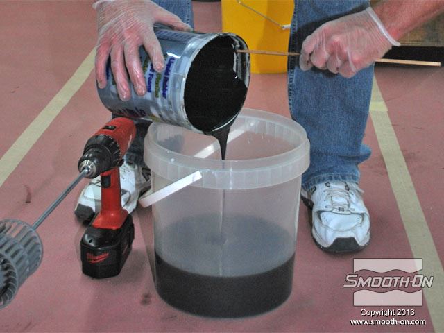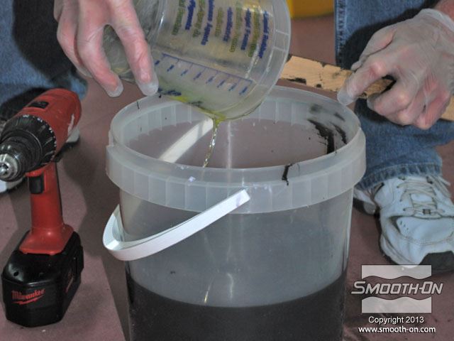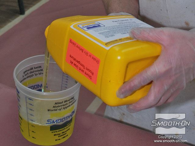 שופכים את הפוליאוריתן המוקצף Flex Foam-iT!® 17 אל תבנית הסיליקון.