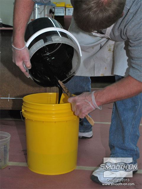 שופכים את חלק B המעורבב עם הפיגמנט למיכל ערבוב גדול.